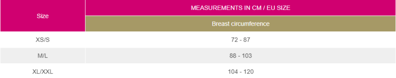 • Pooperacyjna opaska stabilizująca piersi została zaprojektowana do stabilizacji implantów dla pacjentek po powiększeniu piersi (powiększenie piersi przy użyciu implantów)