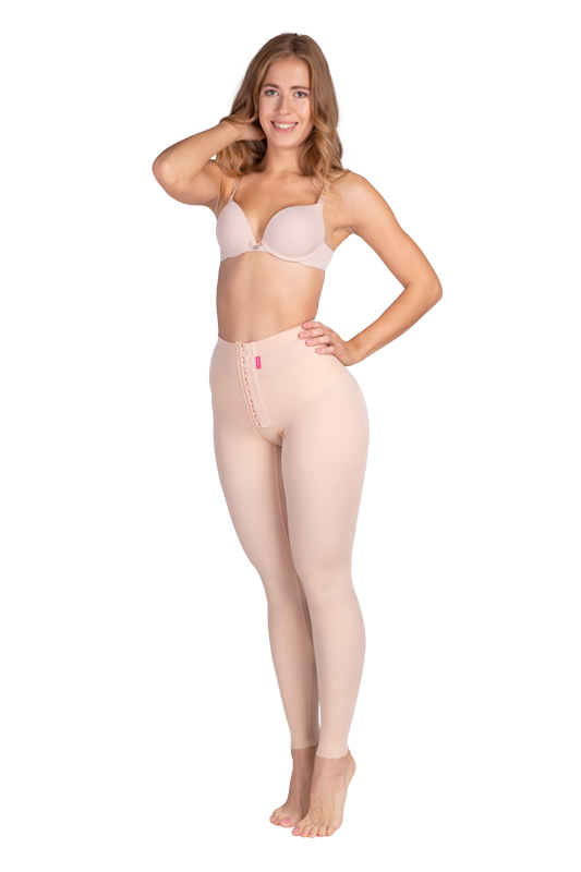 • Damska pooperacyjna odzież uciskowa; długie spodnie, które są odpowiednie po liposukcji pośladków, bioder, ud, kolan lub łydek.