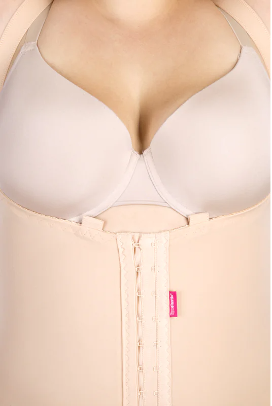 Bielizna uciskowa rozciąga się pod biustem i jest wykończona miękką lamówką
