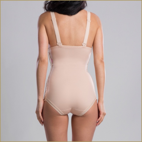 • Zapięcie po obu stronach ma trzy rzędy haftek dla maksymalnego możliwego dostosowania kompresji w poszczególnych obszarach